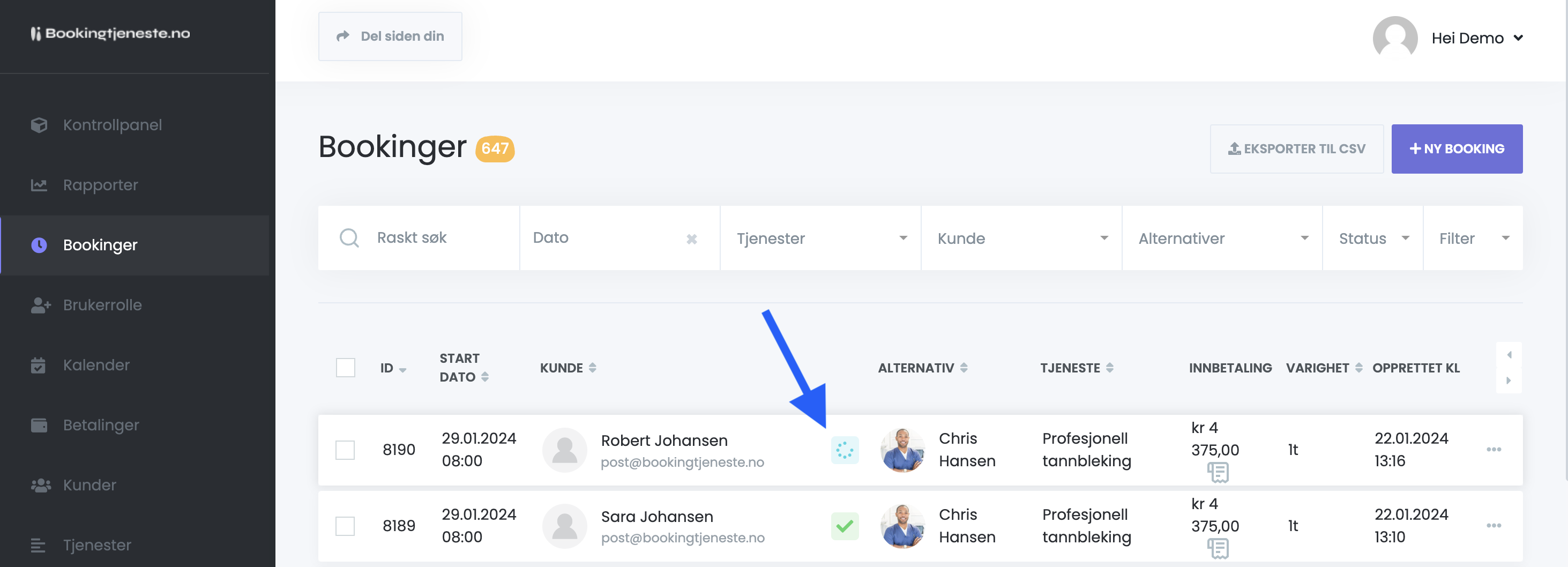 - Varsling: Kunden som får tildelt plassen, får automatisk beskjed på e-post eller SMS med alle detaljer.